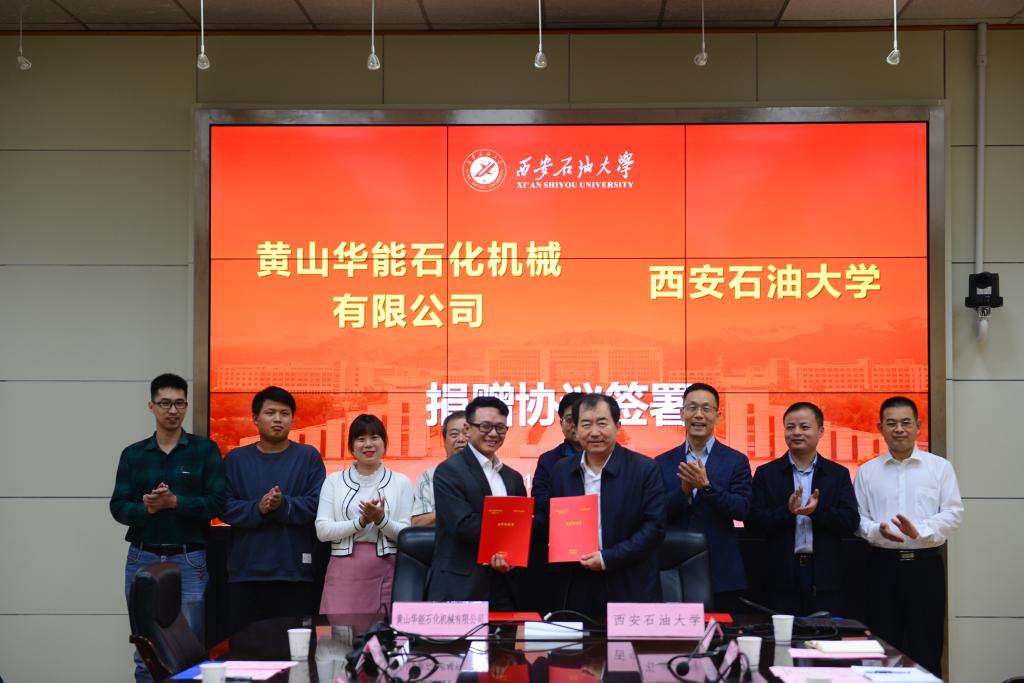 在雁塔校区第二会议室举行黄山华能石化机械有限公司合作捐赠协议签署会。黄山华能石化机械有限公司董事长李杨(继教院99级校友),技术总工田宽等一行5人,德州扑克