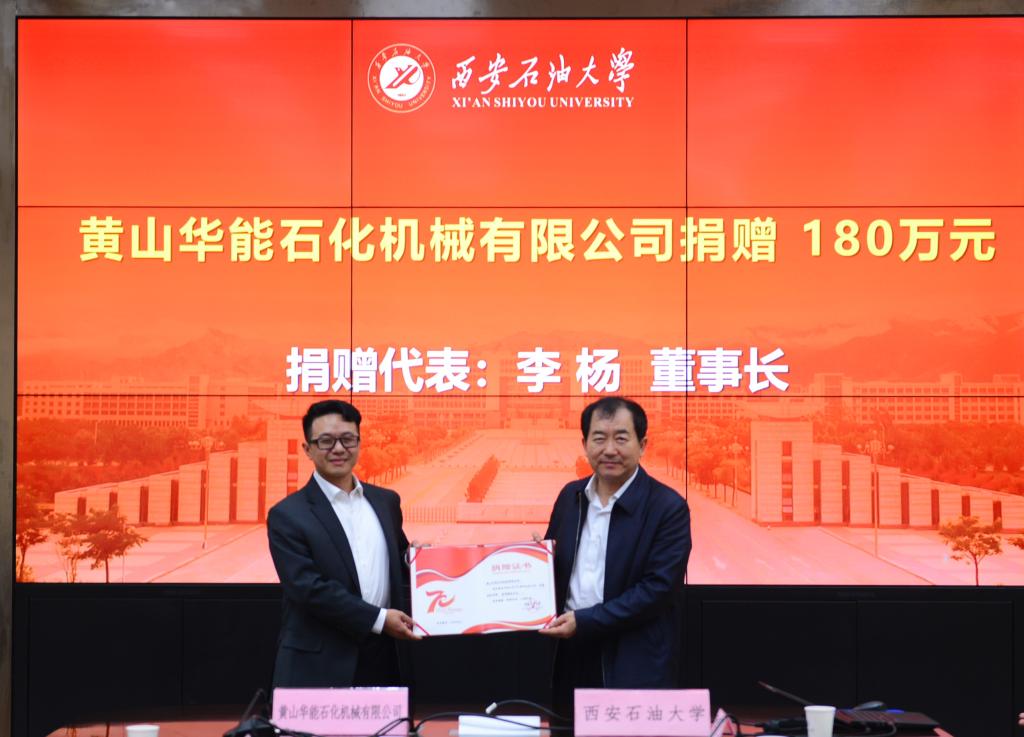 李杨董事长介绍了黄山华能石化机械有限公司的发展历程、主营业务、科技创新、取得成就、发展战略等基本情况。他谈到,母校培育之恩当涌泉相报,在母校建校70周年之际以微薄之力回报母校,是表达对母校培养的感谢、感激、感恩之情,希望双方能够在人才培养、科技研发、技术攻关等多方面开展合作,促进双方互利共赢、共同发展。
