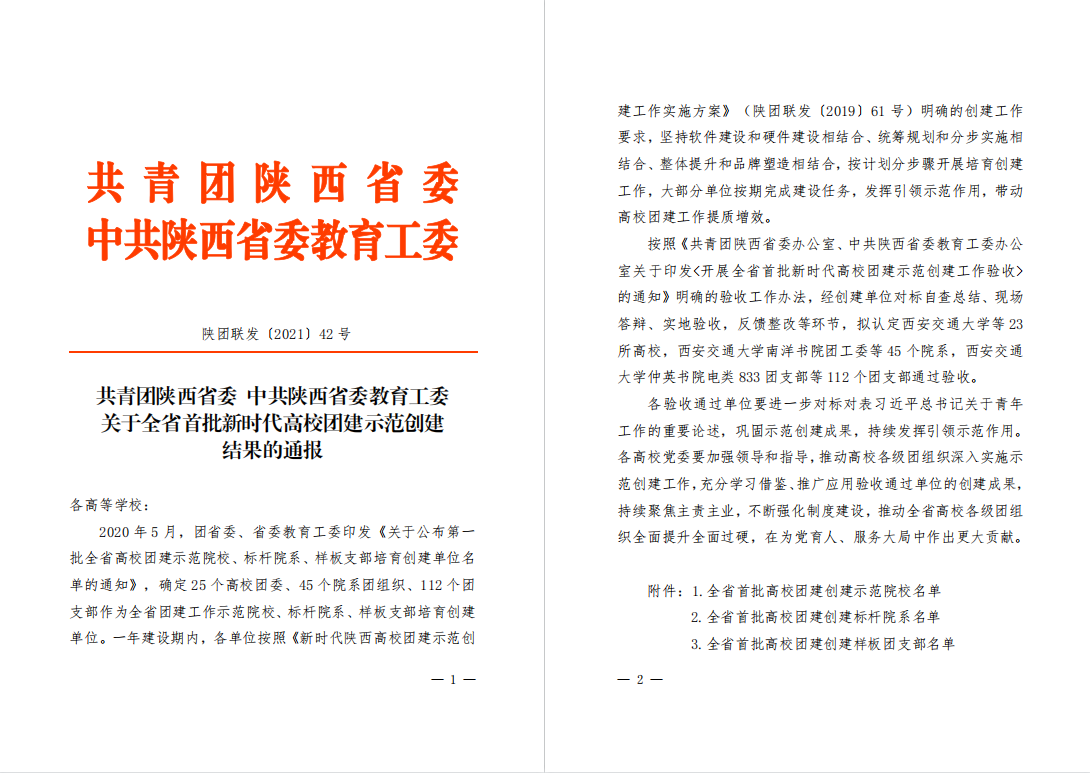 近日,共青团陕西省委、中共陕西省委教育工委公布了《关于全省首批新时代高校团建示范创建结果的通报》,德州扑克