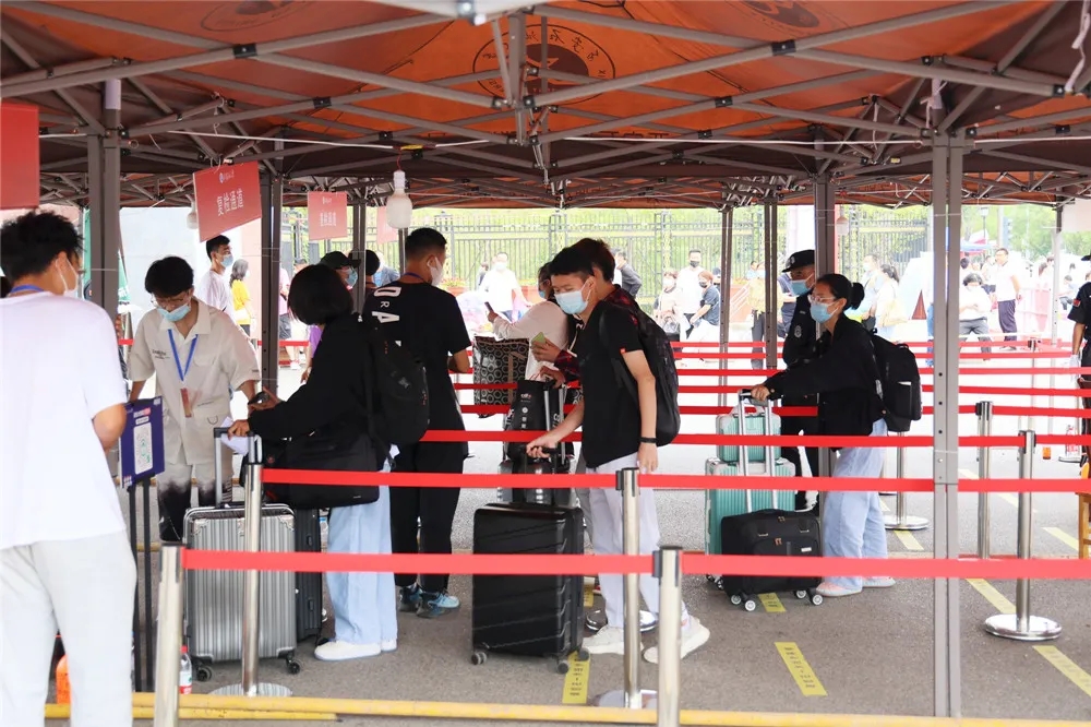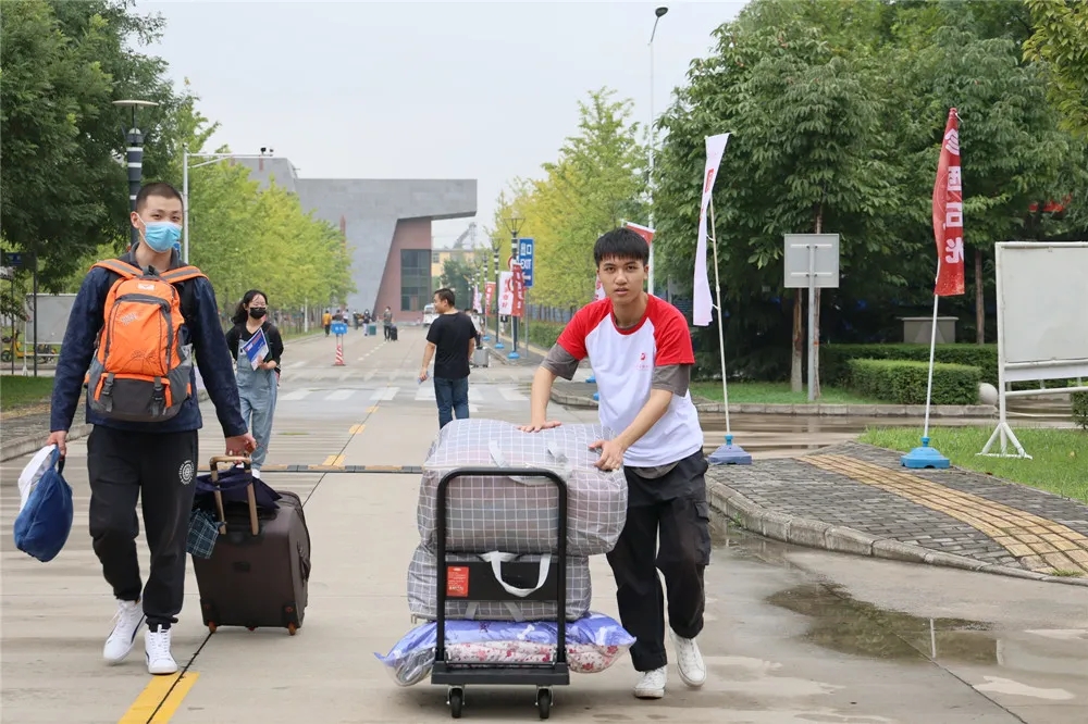 研究生工作部周密安排,认真部署,组织70余名研究生志愿者,提前预备雨衣、手推车等,便于雨天帮助新生搬运行李;热情引导、悉心办理报到手续,有序发放校徽、校园平面图、校园疫情防控工作须知、致2021级研究生的一封信等,报到现场秩序井然、气氛热烈。