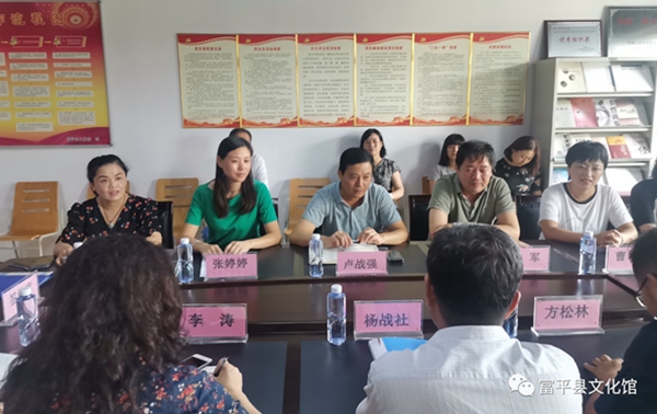 在富平县文化馆,杨战社副校长一行与富平县文化和旅游局局长卢战强、副书记吴军、副局长文化馆馆长张婷婷等就红色文化的传承与传播、区域文化特色的凝练进行了座谈,然后一起参加了实践基地揭牌仪式。卢战强局长介绍了富平县文化和旅游产业的发展现状。他说,富平县的人文资源丰富、文化遗产众多,红色文化资源也十分丰富,希望能够与高校结对交流合作,发挥德州扑克