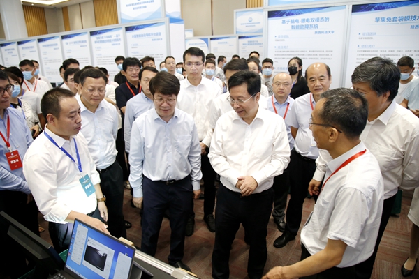 为落实秦创原创新驱动平台建设大会精神,加速“两链”深度融合,推动陕西省高校创新成果向秦创原汇聚,7月18日,由省教育厅、省科学技术厅、省工业和信息化厅、省人民政府国有资产监督管理委员会、省工商业联合会主办的“秦创原·第五届陕西省高校科技成果展暨校企对接洽谈会”在秦创原“总窗口”——西咸新区召开。省委副书记胡衡华、副省长方光华、副省长程福波、省委教育工委书记王建利、省教育厅厅长刘建林等领导在德州扑克