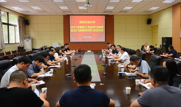 教职工党史学习教育赴玉门油田培训班出征仪式在雁塔校区第一会议室举办。校党委副书记雷西合出席仪式,党委组织部、党委教师工作部及培训班参训学员参加仪式。仪式由党委组织部常务副部长种宇宏主持。