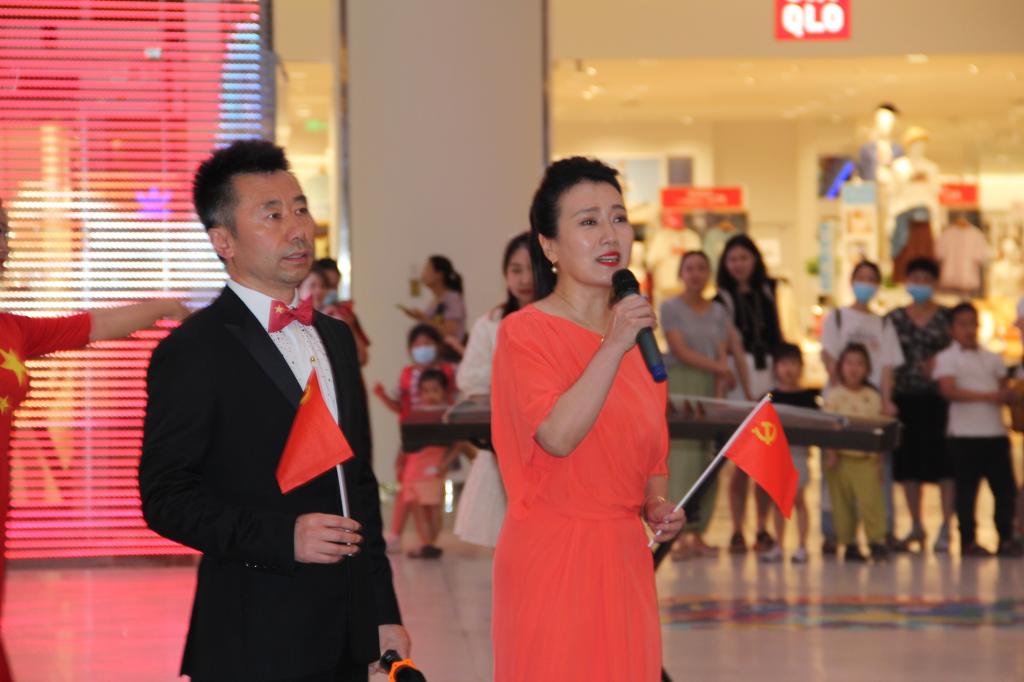 “红歌快闪”的影响力和校园文化的辐射力,音乐系于6月30日晚在momopark商务中心举办了节目内容相同的“红歌快闪”活动,在人群聚集地引起了广大群众的热烈回应。