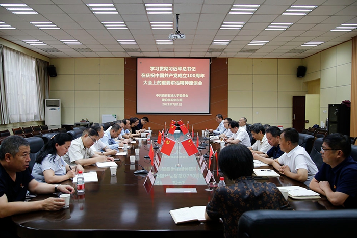 庆祝中国共产党成立100周年大会7月1日上午8时在北京天安门广场隆重举行。中共中央总书记、国家主席、中央军委主席习近平发表重要讲话。在集中观看视频会实况后,校党委理论学习中心组“学习贯彻习近平总书记在庆祝中国共产党成立100周年大会上重要讲话精神”座谈会在雁塔校区会议中心第一会议室召开。党委理论学习中心组成员参加会议,校党委副书记、校长李天太主持会议。
