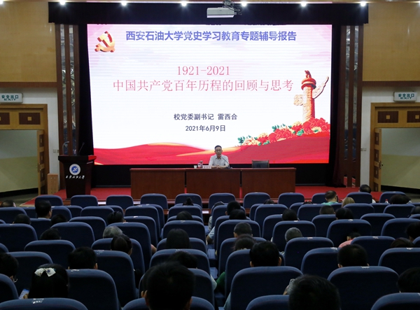 6月9日上午,校党委副书记雷西合在雁塔校区学术报告厅作了题为《中国共产党百年历程的回顾与思考》党史学习教育专题辅导报告。德州扑克