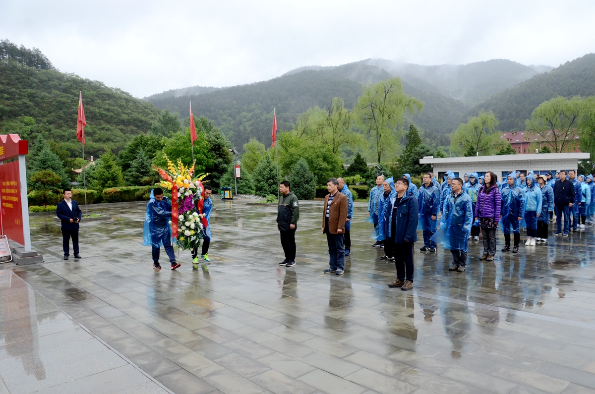 16日上午,在黄龙县瓦子街战役旧址的学习涵盖现场教学、仪式教学、体验教学。大家不畏风雨,为牺牲的革命烈士敬献花篮、瞻仰烈士纪念碑,重温了入党誓词。随后,大家步入瓦子街战役纪念馆,参观馆内历史陈列,集中观看了瓦子街战役专题片《永远的丰碑》。一幅幅图片、一幕幕生动感人的影像全面展示了浴血奋战的感人场景。在体验教学阶段,大家在陵园现场聆听了屈军锋老师所做的《汲取力量,用奋斗实现先烈的美好梦想》的追思报告,感受了烈士们英勇不屈的革命精神。最后,大家排成三列纵队,跑步进入东南山战役主战场遗址,并跟随讲解员重温了瓦子街战役的可歌可泣的战斗过程。