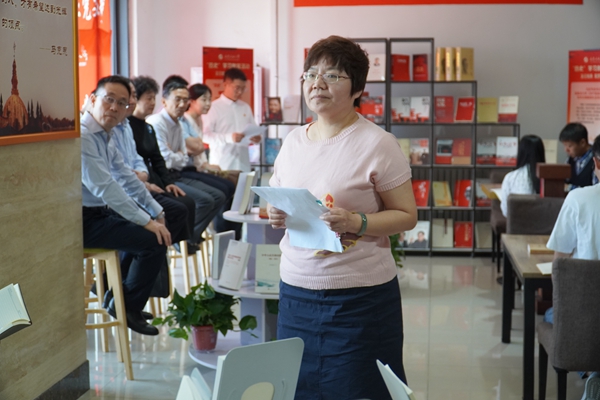 马克思主义研习社分社学生社团党支部书记李卓锦就基层师生党支部党史学习教育开展与指导组作了现场汇报交流。
