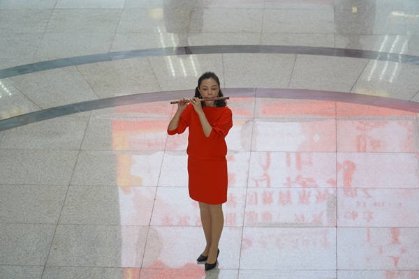 音乐系教师廖毅演奏竹笛拉开“红色快闪”的序幕