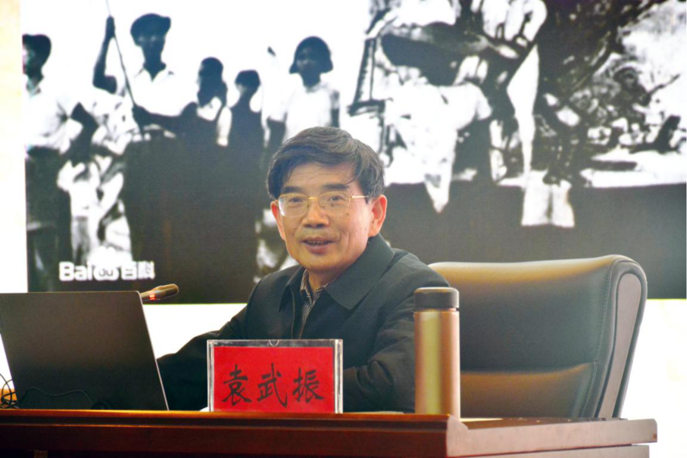 袁武振教授从“为什么学?学什么?怎样学?”出发,围绕深入学习领会习近平总书记关于党的历史的重要论述,阐释了党史学习教育的重大意义。随后,袁教授从中共党组织在陕西的建立、陕西党组织在革命洪流中的发展成长、陕西党组织掀起土地革命风暴、全民族抗战中的陕西党组织、夺取新民主主义革命的全面胜利、党领导陕西新民主主义革命胜利的基本经验等六个方面,通过详实的史料、精辟的语言,生动再现、系统梳理了陕西新民主主义革命时期党的历史,为在座的师生深刻认识党的百年奋斗史开阔了视野,廓清了迷雾,提供了借鉴。袁教授的报告主题鲜明、立意深刻,使大家进一步明确了学习党史的目的,坚定了听党话、跟党走的信念和决心。