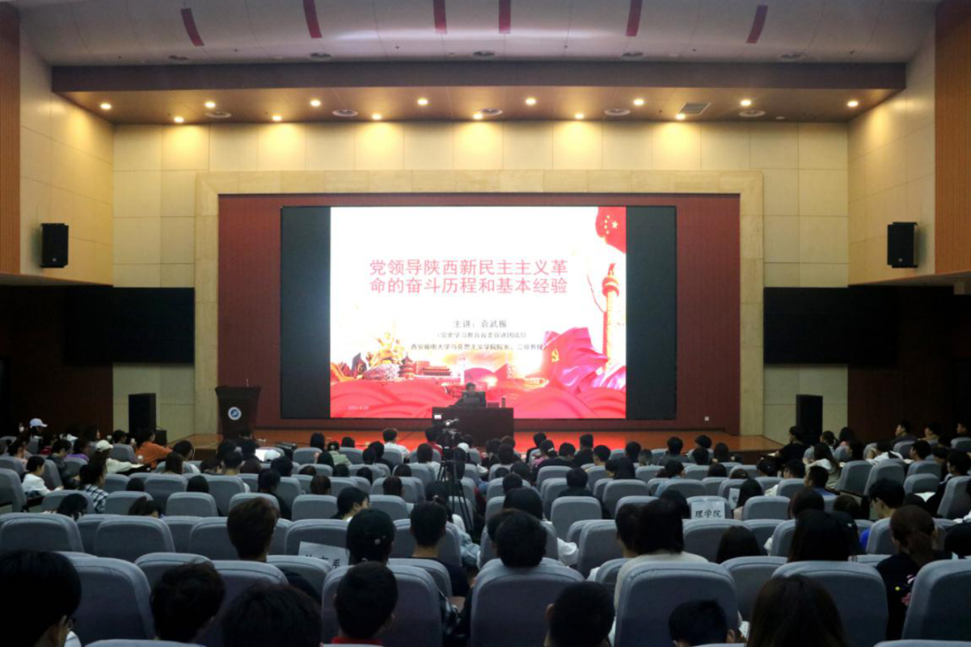 第十三期“青马班”学员作题为《党领导陕西新民主主义革命的奋斗历程和基本经验》的专题报告。校团委全体成员、“青马班”学员共计400余人参加了报告会。