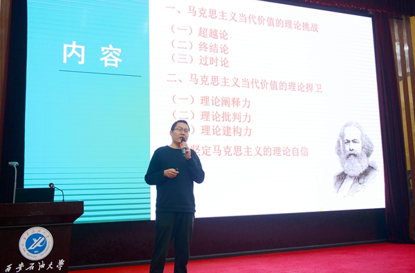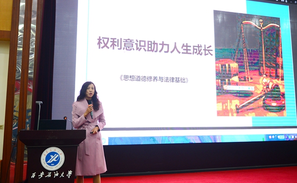左玲、石少虎、程丽玥、郑伟四位思政课“大练兵”获奖教师担任主讲。左玲老师以“坚持党对一切工作领导的历史演进”为题,阐述了坚持党对一切工作的领导的历史依据和制度安排,指出新时期要坚持和加强党的全面领导,从严治党。石少虎老师从马克思主义当代价值的理论挑战、理论捍卫和理论自信三个方面讲起,分析了“马克思主义当代价值的理论维度”。程丽玥老师从秋菊打官司讲起,从认知、理解、态度三个层次阐述了权利意识,指出维护权利要认真务实、尊重他人、贡献社会。郑伟老师从《南京条约》签订的历史背景和签订过程讲起,阐述了《南京条约》的内容,分析了《南京条约》的签订带给中国的深远影响,希望我们以史为鉴,开创未来。获奖教师代表程丽玥老师以《我不是一个人在“战斗”》为题,与参会教师分享了心得与收获。