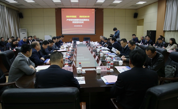 在雁塔校区第一会议室举办与西安市鄠邑区产学研对接及科技成果转化项目签约仪式。西安市科技局局长李志军,鄠邑区委书记范九利,鄠邑区委副书记汪国栋,鄠邑区委常委、区委组织部长孔维龙,校党委书记赛云秀,校长李天太,校党委副书记雷西合,副校长陈军斌出席会议。校党委副书记张木主持会议。