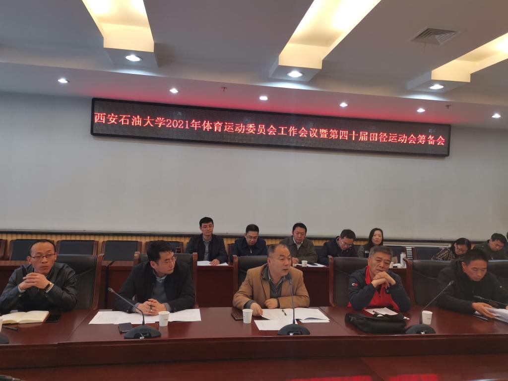 体育运动委员会工作会议暨第四十届田径运动会筹备工作会在鄠邑校区图书馆第二会议室召开。校体育运动委员会主任、副校长陈军斌出席会议。校体育运动委员会委员及各院(系)负责人参加会议。会议由体育系主任李寿邦主持。