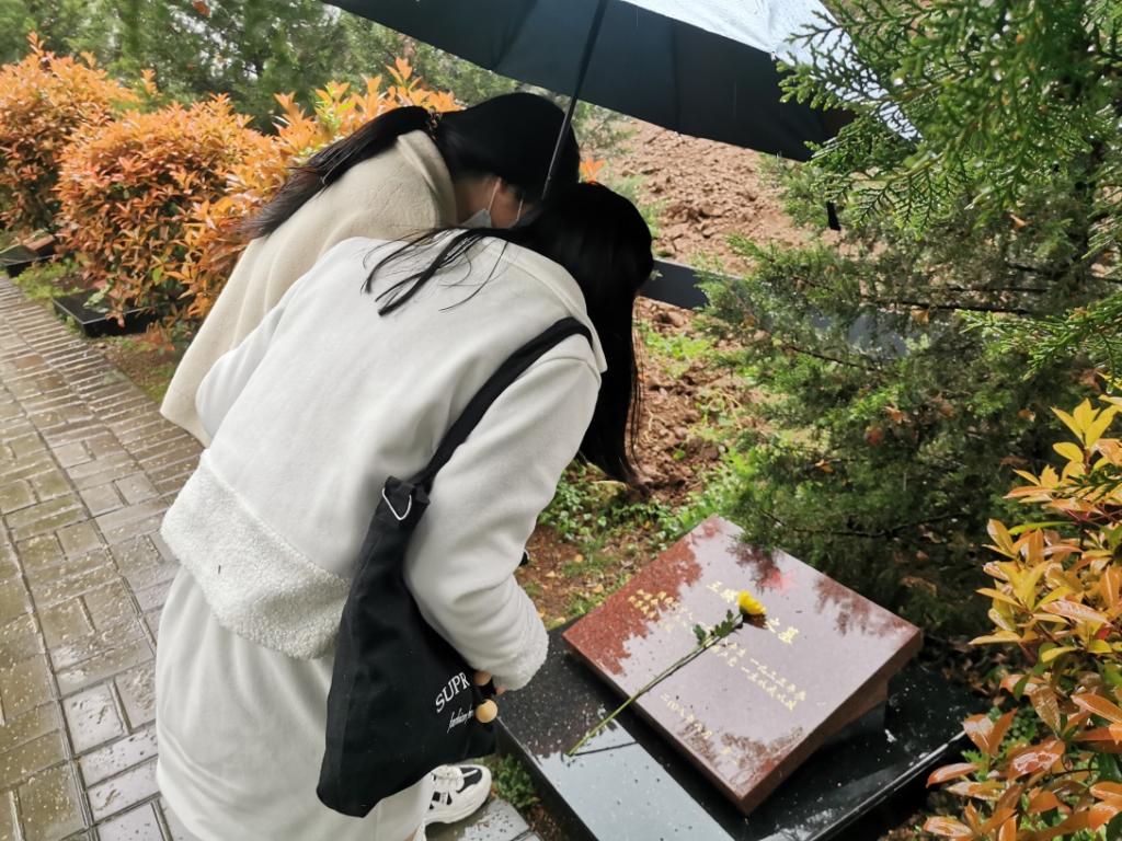 30余名师生代表参加了活动。天空飘落着雨滴,“明理增信,崇德力行;兴国昌邦,弦歌续唱”的祭辞在烈士陵园中回荡。在庄严肃穆的氛围中,参加活动的人们面向烈士纪念墙默哀、行鞠躬礼,并为革命烈士敬献鲜花。