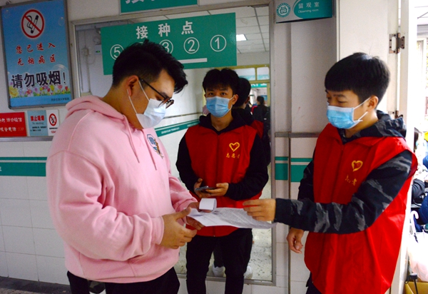 此次设置的新冠疫苗接种点,通过了雁塔区疾病预防控制中心验收,接种现场划分为等待、登记、接种、留观和应急处置等五个区域,布置了新冠疫苗接种流程、接种禁忌、注意事项等宣传展板,对新冠疫苗接种相关知识进行宣传。现场还安排了学生志愿者,引导待接种师生有序排队,协助医务人员发放知情同意书、收取健康信息承诺书、核对健康和身份信息、开展留观医疗咨询等。