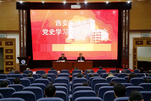 党史学习教育动员大会在雁塔校区学术报告厅召开。校党政领导赛云秀、李延平、张木、雷西合、杨战社、陈军斌、李华、苏文甫、程永清,以及全体处级干部参加大会。校党委副书记雷西合主持会议。