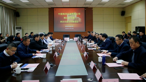 长期以来提供的支持表示感谢,并从海上油气勘探开发、生产、科研等方面对公司情况进行了介绍。他以中海油“七年行动计划”战略为切入点,提出公司在科研方面的有关需求,展望了校企双方在剩余油气储量预测、智能油田、高温高压油田技术、深水领域油气勘探等几个层面开展深层次、多方面的合作前景。