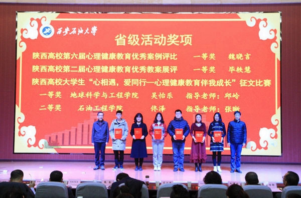 李天太校长为获得教育部抗疫心理援助志愿者、“油缘心理”抗疫线上心理援助志愿者代表、以及在全国心理健康教育活动中获得突出成果的老师和学生代表颁发荣誉证书。校党委副书记张木、副校长苏文甫为在全省各项心理健康教育活动中表现突出成果、以及在校级奖项中荣获一等奖的老师和学生代表颁发荣誉证书。学工部部长赵健、研工部部长高荣芳、校团委书记何国强为2020优秀心理委员及优秀组织奖单位颁奖。