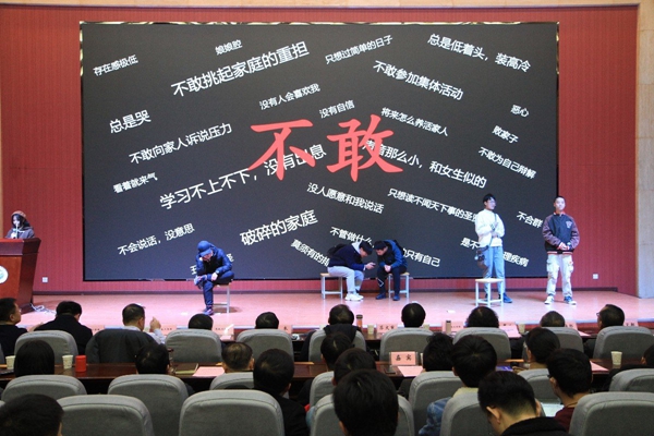 2020年心理育人优秀实践作品的部分成果进行了汇报演出。地质2002班心理主题班会《学会交往,与爱同行》将德育与心育有机融合,体现了管理育人的作用。校园心理情景剧《人从众,忘初衷》《蜕变》《独白》《消融的面具》《生而伟大》,以学生为主体,结合自己的成长经历和思想感悟,从身边人和身边事入手,巧妙利用心理学技巧结合专业来展现内心冲突,演绎成长过程的不同色彩。最后,校团委、各院(系)心理专干、思想教育科少数民族学生工作办公室、学生心理成长指导中心、心理委员联合协会、大学生心理协会共同表演的手语舞《坚信爱会赢》,将汇报会推向了高潮,师生用无声的语言传达出西石大师生在疫情面前不退让的豪迈气概,表达出战胜疫情的昂扬斗志,坚信中华民族万众一心,爱一定会赢,凛冬严寒终将过去,春日阳光必将普照!