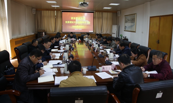 在雁塔校区行政楼五楼会议室召开党委理论中心组学习会议,集中学习党的十九届五中全会精神。党委理论学习中心组成员参加会议,党委书记赛云秀主持会议。