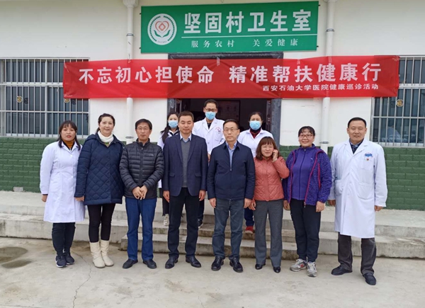 为切实解决老百姓看病难、就医难的实际困难,10月29日,校医院医护人员在党委副书记雷西合、副校长苏文甫的带领下,带着药品及血压计、听诊器、心电图、B超等诊疗机械,赴永寿县永平镇坚固村开展以“不忘初心担使命、精准帮扶健康行”为主题的义诊活动。永寿县副县长杨西锋、永平镇党委书记乌佩艳到场看望了医护人员。