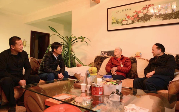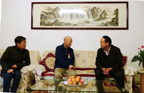 赛书记一行分别来到三位抗美援朝志愿军老战士董玉田、郑承兰、王世达家中,转达党中央的关怀和全校师生的祝福,并为他们佩戴无上光荣的“中国人民志愿军抗美援朝出国作战70周年”纪念章。每到一处,赛书记亲切询问他们的身体健康状况、家庭生活情况,倾听他们讲述当年抗美援朝的战斗故事,对老战士在抗美援朝战争中敢于斗争不怕牺牲的精神致以最崇高的敬意,并祝愿他们生活幸福、健康长寿。