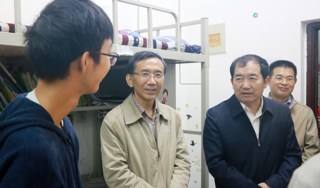 10月1日晚,校长李天太、校党委副书记张木深入鄠邑校区弘石报告厅、图书馆、教学楼、实验楼、宿舍楼等场所,走访慰问国庆中秋长假期间留校学生。学生工作部、校团委有关负责人和鄠邑校区学工系统值班干部参加了走访慰问活动。