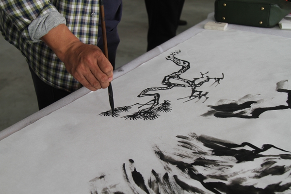 教职工书画协会和永寿县书协、美协会员们开展了现场交流活动。书画爱好者在现场泼墨挥毫,创作了一幅幅精美作品,吸引了在场观众的驻足欣赏。