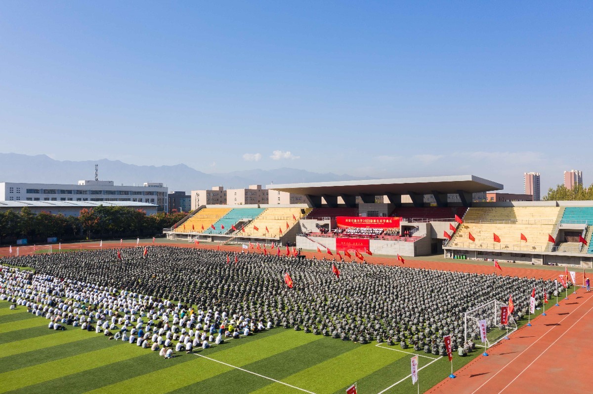 在鄠邑校区东体育场举行2020级新生开学典礼,同时将直播信号传送至雁塔校区学术报告厅。校党政领导赛云秀、李天太、李延平、张木、雷西合、陈军斌、李华、苏文甫、程永清出席大会。各院(系)及有关职能部门负责人、教师代表、2020级全体新生参加大会。大会由校党委副书记张木主持。
