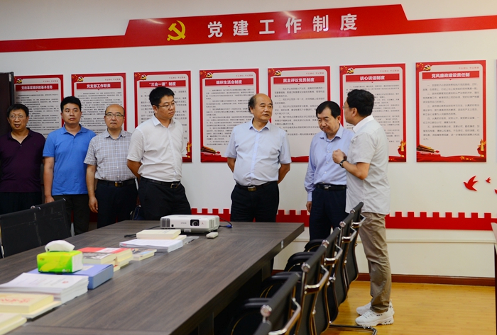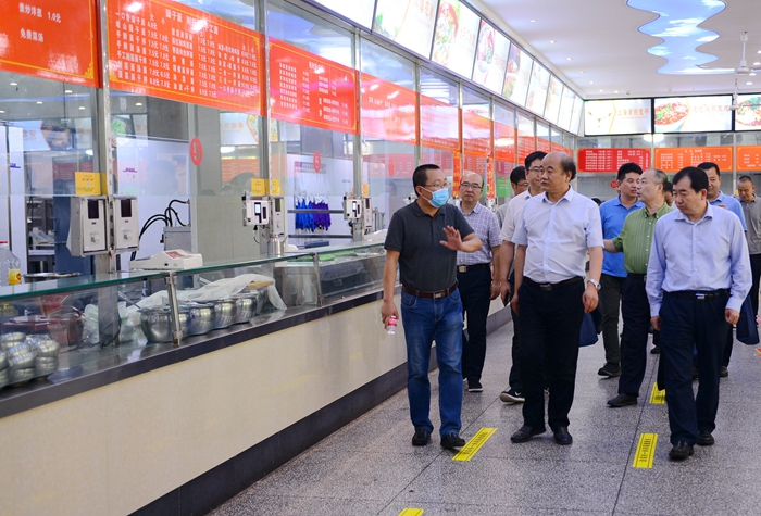 省级“双创”标杆党委党员活动室及“双带头人”教工支部书记工作室,并参观了学生食堂,了解疫情防控工作情况。