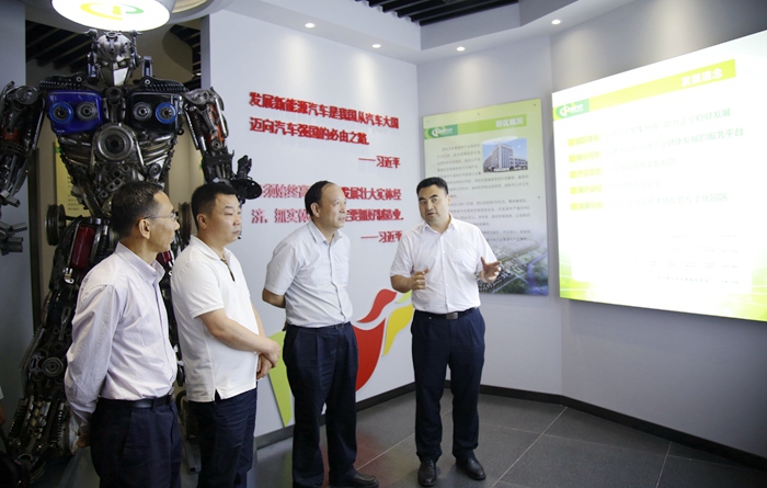 宣传片。叶少腾董事长对赛书记一行来访表示欢迎,并介绍了园区的建设进度、运营模式以及近年来成功实现运营服务对外输出等发展情况。他谈到,西安汽车零部件产业园以汽车零部件及装备制造为主导产业,是陕西省50个省级示范县域工业集中区中的专业特色示范区、国家中小企业公共服务示范平台、国家小型微型企业创业创新示范基地、陕西省科技企业孵化器。特别是2018年成为西安市汽车产业发展规划(2018-2025年)中“一走廊两区一园”产业布局中的“一园”,承担了西安市汽车产业发展目标任务,目前在人才储备、技术创新等方面还有一定的缺口和差距,赛书记一行来访必将进一步推动双方的深度合作,对于产业园在管理、技术、人才创新方面的发展具有重要意义。他希望双方持续搭建企业、高校、学生三方紧密合作的平台,开展更深层次的交流合作。