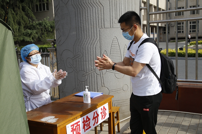 返校前学生每日通过“易班小程序健康信息上报系统”填报个人健康状况及行程轨迹。返校当天,所有同学在现场工作人员的指引下,依次有序完成了更换口罩、测量体温、行李和手部消毒、核查健康码(绿码)、身份核实等流程。