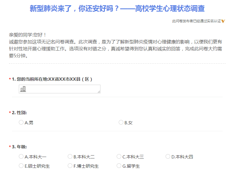 (新型肺炎来了,你还好吗?--疫情期间心理状况调研(高校版))
