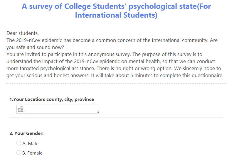 (新型肺炎来了,你还好吗?--疫情期间心理状况调研(英文版))