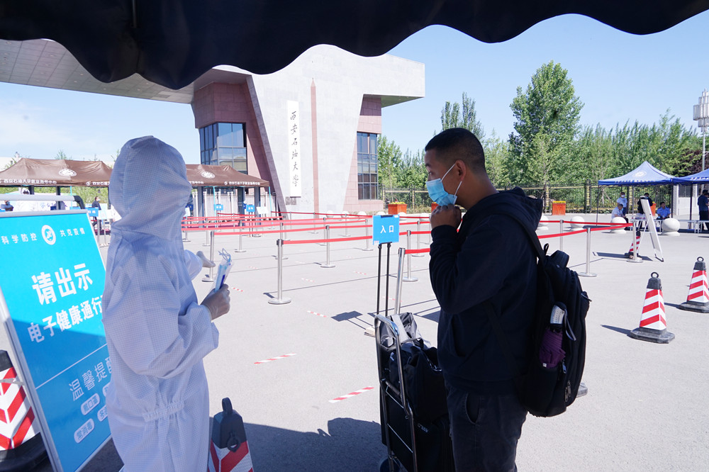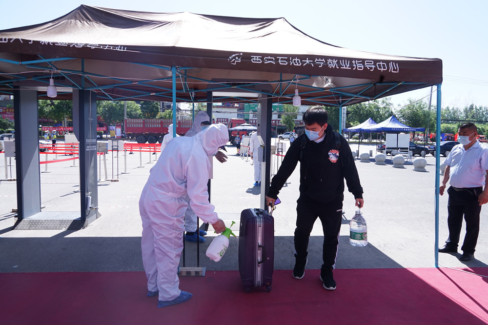 迎来符合疫情防控要求的首批本科毕业生顺利返校。同学们通过核验健康码、测量体温、更换口罩、行李消毒等环节,有序步入阔别许久的校园,言语与眼神都闪耀着激动与喜悦。