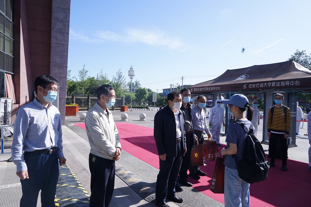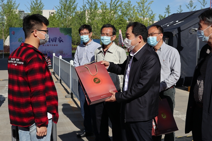 上午8点,校长李天太、校党委副书记张木、副校长苏文甫及相关部门负责人在鄠邑校区东大门迎接返校同学归来。李天太校长为率先返校的9名同学送上健康礼包,详细了解大家的假期生活、线上学习、毕业设计(论文)进展、就业考研等情况,并提醒大家返校后继续注意科学防护、理性应对,以最好的状态迎接校园生活的到来。