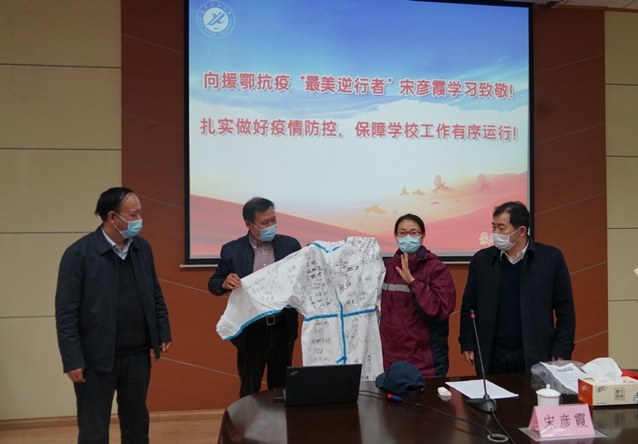 在雁塔校区第一会议室召开“最美逆行者”宋彦霞事迹交流座谈会。校党政领导赛云秀、李天太、李延平、张木、杨战社、陈军斌、苏文甫、程永清、樊晓民,相关部门、各院系负责人参加会议。校长李天太主持会议。