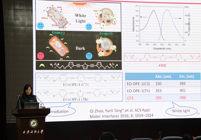 论坛的第一阶段由宋海洋教授和张智平教授主持。西安交通大学丁向东教授作了题为“机器学习辅助新材料研发与多尺度计算”的特邀报告;国家杰出青年科学基金获得者、国家百千万人才工程入选者、西北大学吴彪教授作了题为“阴离子配位化学”的特邀报告;国家优秀青年科学基金获得者、陕西省中青年科技创新领军人才、陕西师范大学唐艳丽教授作了题为“功能化共轭聚合物探针及生物医学应用”的特邀报告。