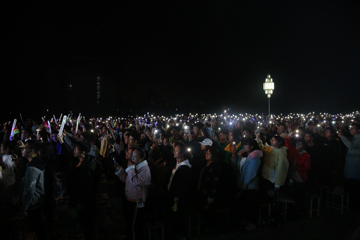庆祝中华人民共和国成立70周年暨2019迎新晚会在鄠邑校区图书馆北广场举办。校党委书记赛云秀、校长李天太、校党委副书记张木、总会计师樊晓民出席晚会。相关部门负责人,各院系书记、副书记、分团委书记、新生辅导员及全体本科新生共6000余人观看了晚会。