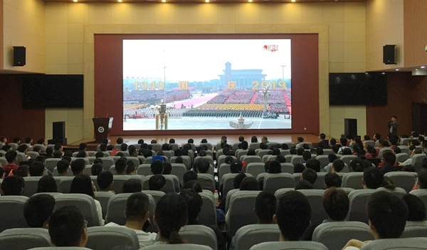 参会师生早早来到会场,在会前观看了庆祝新中国成立70周年的文献纪录片《我们走在大路上》第一集《新中国诞生》,随后集中收看了庆祝中华人民共和国成立70周年大会,认真聆听了习近平主席在庆祝中华人民共和国成立70周年大会上的讲话,满怀自豪的观看了阅兵式和群众游行活动。