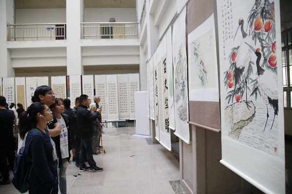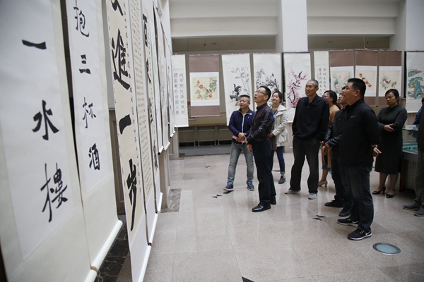 庆祝中华人民共和国成立70周年教职工书画展在雁塔校区二号教学楼东大厅举办。