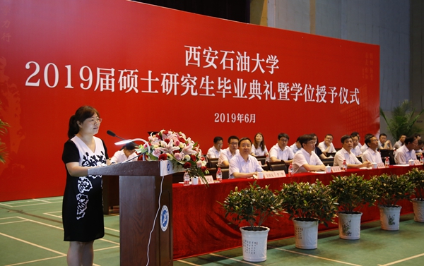 2019届硕士研究生、留学生毕业典礼暨学位授予仪式在雁塔校区体育馆举行。校党政领导赛云秀、李天太、张木、雷西合、杨战社、陈军斌、李华、苏文甫、程永清、樊晓民出席典礼。校学位评定委员会成员、相关处室负责人、各研究生培养院(系)负责人、校友代表、研究生导师代表、2019届硕士毕业生及家长、在校研究生代表共1000余人参加典礼。典礼由副校长李华主持。