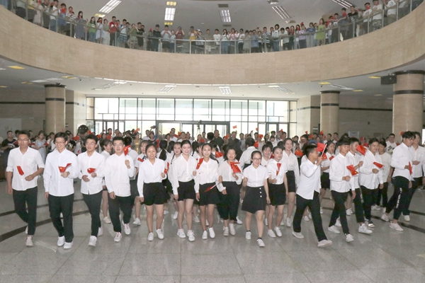 五百余名师生用青春激扬的歌声和优美动人的舞蹈庆祝新中国成立70周年,抒发爱党爱国爱校之情,表达为祖国建功立业的信心和决心。