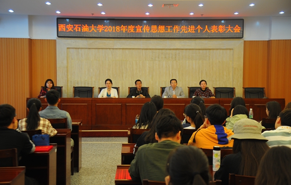 在鄠邑校区图书馆第一会议室召开了2018年度宣传思想工作学生先进个人表彰大会暨大学生新闻社社长聘任仪式。校党委委员、宣传部部长李国武,相关工作人员及大学生新闻社的60余名同学参加了会议。