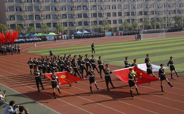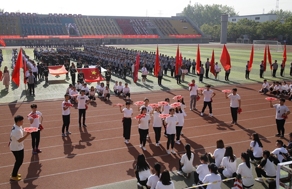 师生精神抖擞、生气勃勃,展现了奋勇进取的精神面貌。