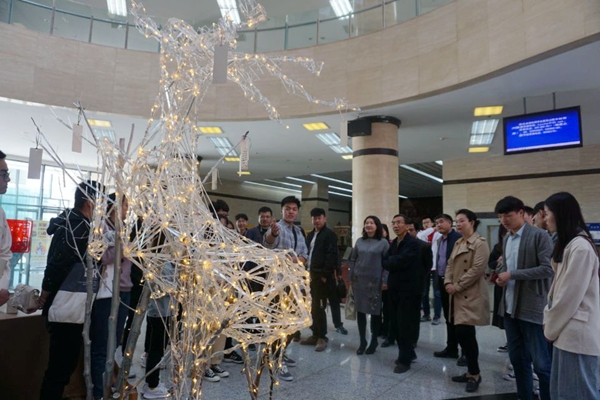 设计系张瑞平教师指导2016级环境设计专业学生完成的课程实践作品。共展出31组室内外公共艺术设计作品,由装置艺术、浮雕、综合材料艺术等类型组成,分布在鄠邑校区二楼图书馆及图书馆周边花园、草坪等相关区域。