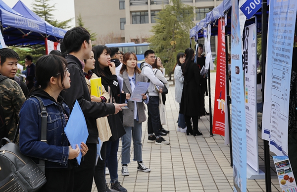 2019届毕业生第三场综合招聘会在鄠邑校区图书馆北广场举办。中国石油集团渤海钻探工程有限公司泥浆技术服务分公司、中石油华东设计院有限公司、中国石油运输有限公司、陕西延长石油材料有限责任公司、陕西省高速公路建设集团公司等450家单位、1000余名招聘代表参会,德州扑克