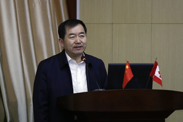 院长周德胜主持,李天太校长作了致辞。李校长对前来参加会议的加拿大驻华大使馆工作人员、阿尔伯塔省中部地区经济发展局领导、中加双方各企业代表及全体同仁表示欢迎,并希望通过此次会议,能够在中加石油石化企业之间架起一座沟通的桥梁,让双方的联系更加频繁、合作更加紧密、成果更加丰硕。