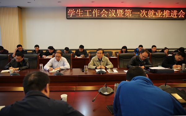 学生工作会议暨第一次就业推进会在鄠邑校区图书馆第二会议室召开。校党委副书记张木出席会议。学生工作部、校团委负责人,各院(系)党委(党总支)书记、副书记、学管办主任参加了会议。